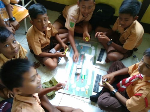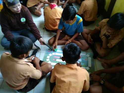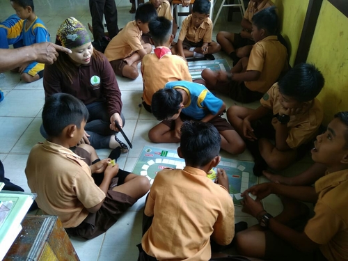 Para siswa mendengarkan dengan saksama materi yang disampaikan. Setelah itu, mereka di ajak untuk bermain sambil belajar denganenggunakan papan pengatahuan gambut.