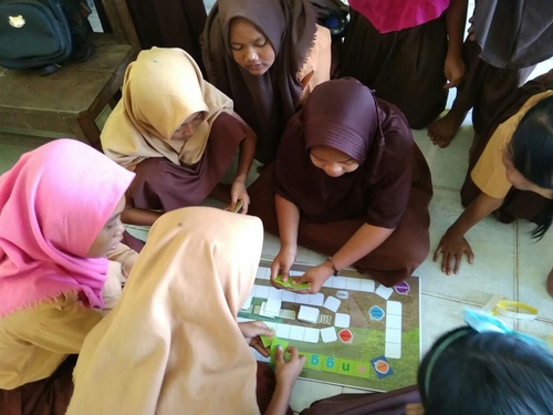 Di papan tersebut mereka akan menyusun kata per kata kemudian membentuk kalimat yang sudah ada di papan kemudian dibaca. Dengan menggunakan papan pengetahuan mereka dapat belajar tentang skat kanal, mangrove, dan bahayanya asap bagi manusia (ispa).
