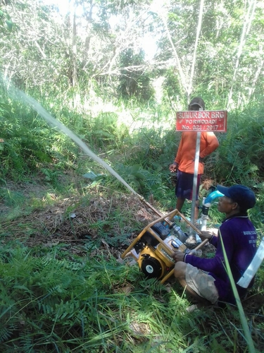 Pembersihan dan pengecekan kondisi sumur bor, dalam rangka pencegahan Karhutlah tahun 2018 di Desa Wonodadi, Kab. Pulang Pisau.