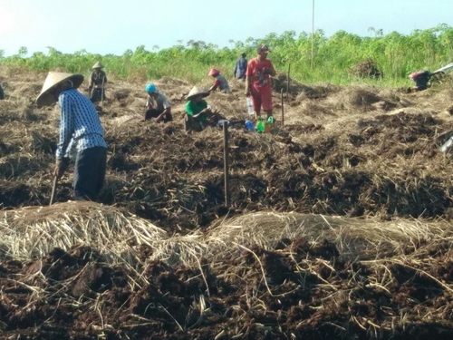 Darwadi, Kepala Desa Sarang Burung Kuala, Kec. Jawai, Kab. Sambas bersama Pokmas Gemari menanam jahe di lahan gambut dengan cara pengolahan lahan tanpa bakar, Kamis (29/11/2018).''Saya sangat men ... Load More