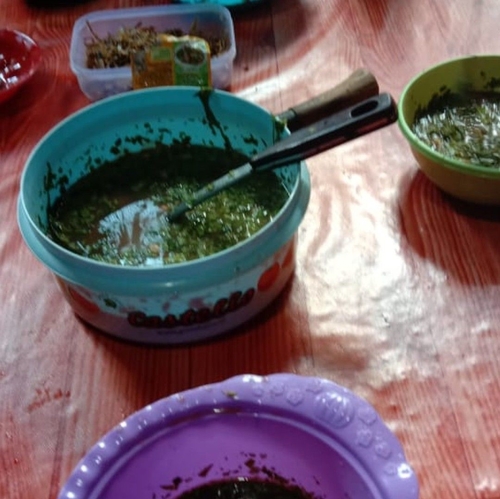 Bubur paddas salah satu makanan khas melayu Kabupaten Sambas yang terbuat dari midding/pakis, daun kassum,  daun kunyit,  bumbu dan lainnya,  Sarang Burung Danau,  Kec Jawai,  Kab ...