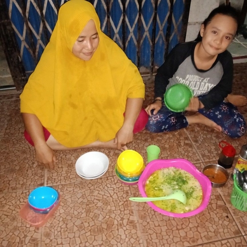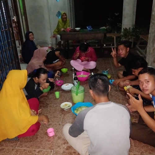 Ibu ibu dan pemuda menikmati sop di rumah Kak Nela,  Sarang Burung Danau,  Kec Jawai,  Kab Sambas,  Kalbar. Jumat, 30/10/2020