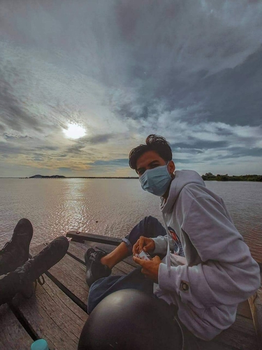 Jipriyadi sedang menikmati keindahan matahari terbenam di sungai sambas besar dari atas kapal motor Kab. Sambas, Kalbar. Jumat,30/10/2020