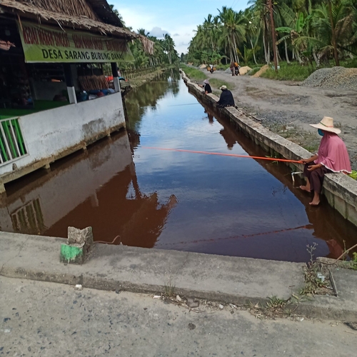 Pasukan ibu2 memancing  ditepi sungai desa sb.danau,kec.jawai,kab.sambas