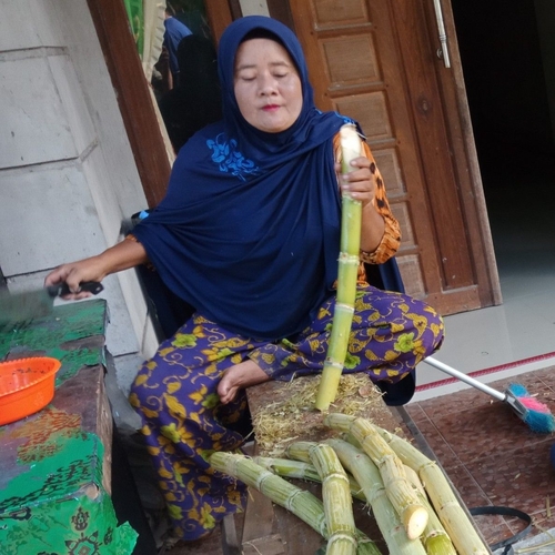 Ibu Neli mengikis tebu untuk di giling di tempat penggilingan,  Sarang Burung Danau,  Kec Jawai,  Kab Sambas,  Kalbar. Jumat, 30/10/2020