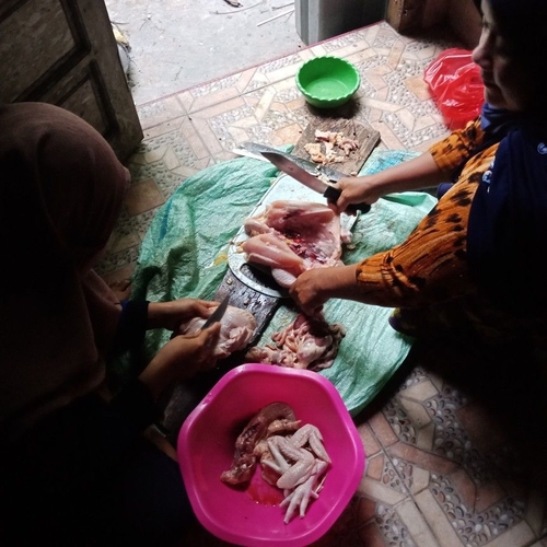 Ibu Neli membersihkan ayam pedaging untuk lauk makan malam di Sarang Burung Danau,  Kec Jawai,  Kab Sambas,  Kalbar. Jumat, 30/10/2020