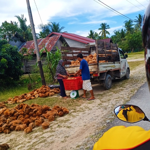 Warga nilam menjual hasil kebun kelapa kepada penampung