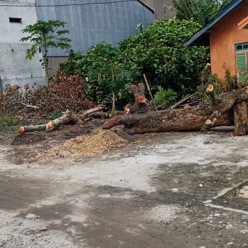 Penebangan pohon mangga besar untuk menghindari pohon tumbang saat hujan ribut di desa sb.danau,kec.jawai,kab.sambas