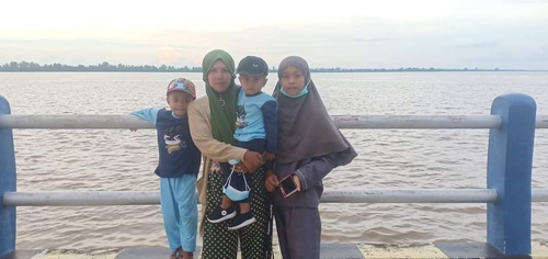 Sarini beserta keluarga sedang menikmati keindahan sungai Sambas besar di pelabuhan sentete Kab. Sambas. Kalbar. Jumat,30/10/2020