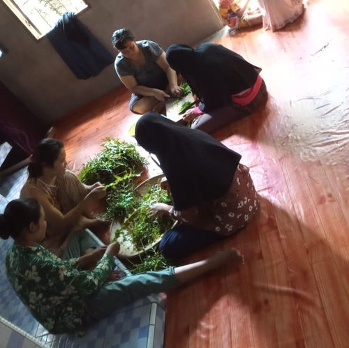 Ibu ibu sedang mengerjakan miding/pakis untuk membuat bubur pedas yang merupakan makanan khas Kabupaten Sambas,  Kalbar. Jumat, 30/10/2020