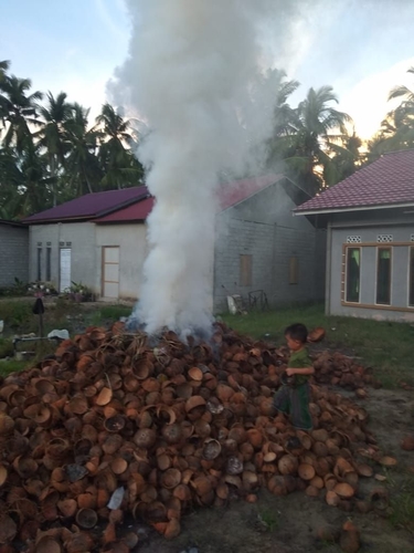 Pak Darwis membuat arang yaitu dengan cara mrmbakar tempurung kelapa di desa sarang burung danau kec. Jawai. Kab. Sambas. Kalbar.Jum'at,  30/10/2020