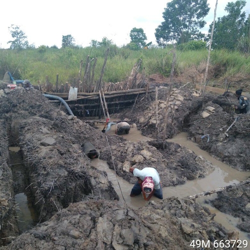Masyarakat Peduli Api Tanggul Harapan melakukan penggalian tanah yang nantinya akan dibuatkan sekat kanal permanen di Desa Pematang Limau, Kecamatan Seruyan Hilir, Kabupaten Seruyan, Provinsi Kalimantan Tengah, ...