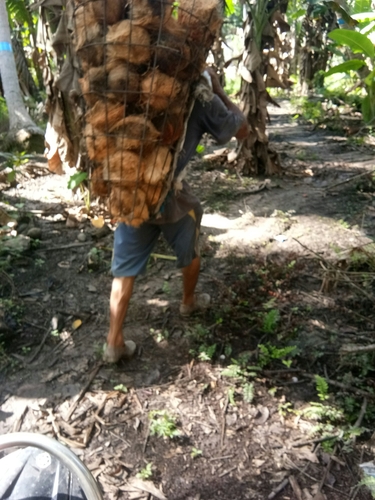 Pak Ruslan mengangkut kelapa Pak Mohtar ke tepi jalan di SB Kuala, Kec. Jawai, Kab. Sambas, KalBar. Jumat (30/10/2020)