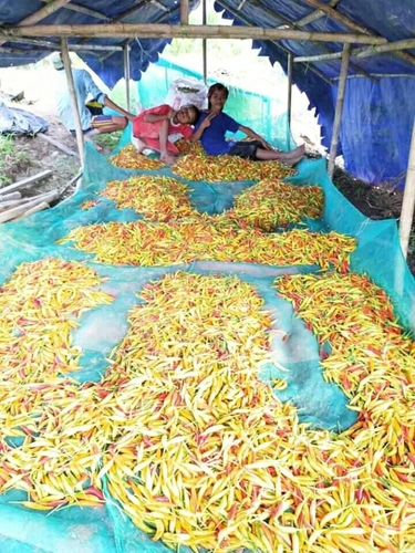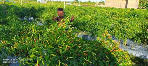 Bng Eki selesai memanen Cabai di Suah Api, Kec. Jawai selatan, Kab. Sambas, KalBar. Jumat (30/10/2020)