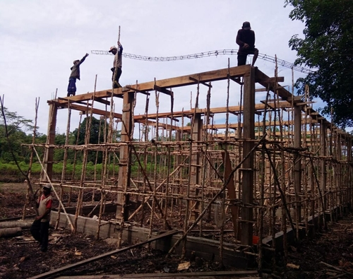 Pemasangan besi tulangan untuk ring ballak bangunan gudang pengolahan pupuk organik BUMDes Farm Jaya, Desa Pangkoh Sari, Kec.Pandih Batu, Kab.Pulang Pisau. Jumat (30/10/2020)