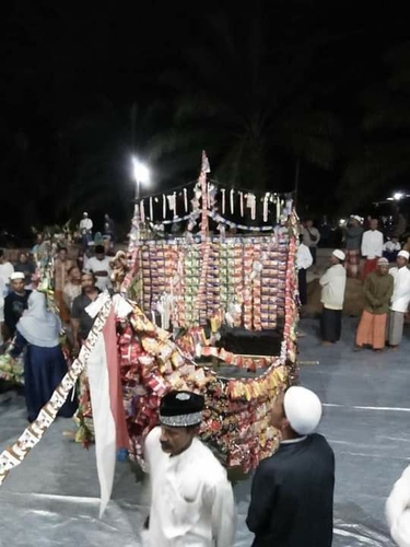 warga pontianak bergotong royong mebuat kapal air yg di susuni ya roti roti an utuk acara maulid nabi di desa sarang burung danau kb.sambas kamis 29\10\2020