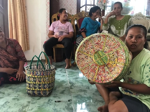 Ibu-ibu Desa Tegalsari menampilkan hasil kerajinan tangan mereka berbahan dasar plastik bekas.
