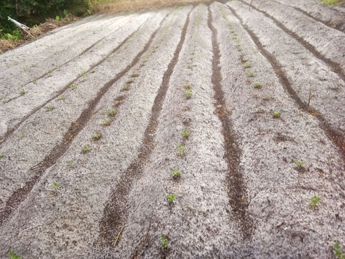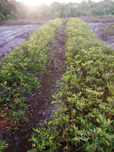 Tanaman Kacang Tanah Pak Khairul sudah tampak mengeluarkan Daun dari lubang tanam di lahan berpasir SB. Kuala, Kec. Jawai, Kab. Sambas, KalBar. Rabu (28/10/2020)