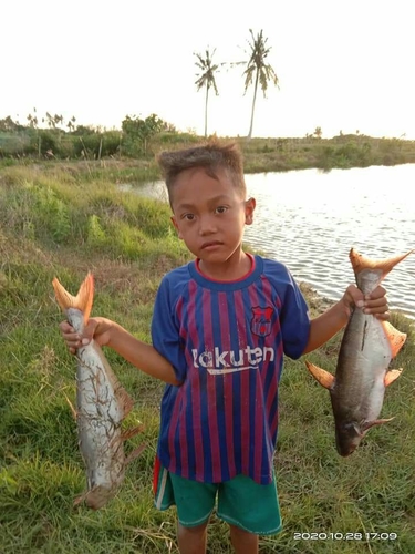 Muhamad melihatkan ikan patin yang ditangkapnya di kolam ikan,di desa sarang burung danau,kec jawai,kab sambas,kalbar,Rabu 28/10/2020
