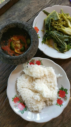 lalapan pucuk daun pepaya sangat cocok dicocolkan kesambal terasi dan limau calong,di desa sarang burung danau,kec jawai,kab sambas,kalbar,Rabu 28/10/2020