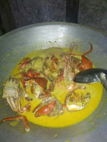 Septi memasak gulai lemak kepiting dan udang,di desa sarang burung danau,kec jawai,kab sambas,kalbar,Rabu 28/10/2020