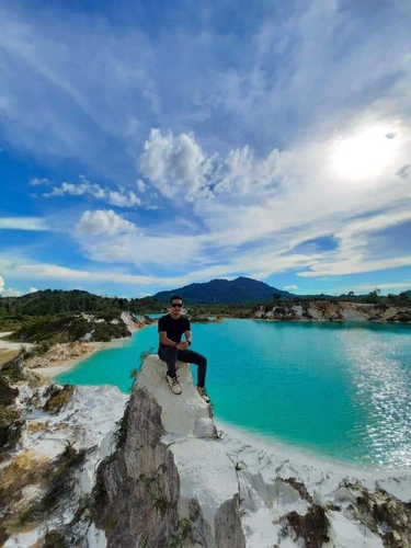 Abang Zar berfoto di kawah biru lokasi Kec. Selakau Kab. Sambas. Kalbar. Rabu,28/10/2020