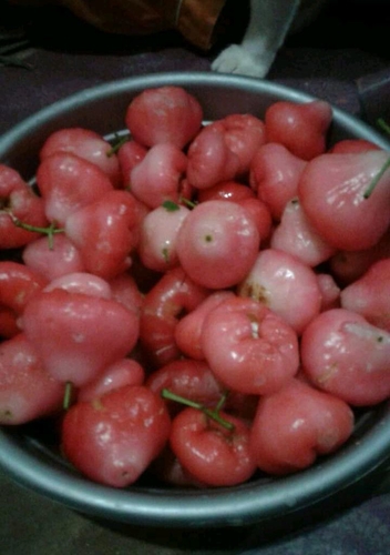 Ibu fitriani sedang menikmati jambu merah di Desa Sarang Burung Danau. Kec. Jawai. Kab. Sambas. Prov. Kalbar. Rabu (28/10/2020)