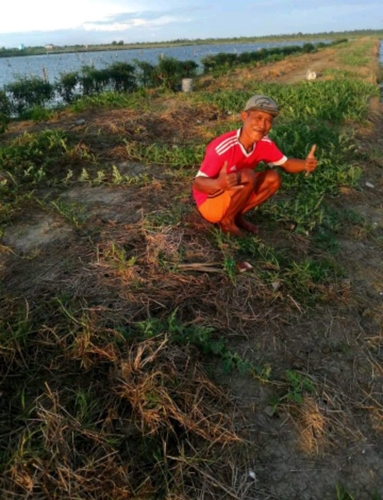 Bapak munarso  membersihkan rumput mengganggu di tanaman semangka miliknya do Desa Sarang Burung Danau. Kec. Jawai. Kab. Sambas. Prov. Kalbar. Rabu (28/10/2020)