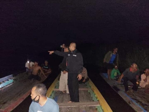 Proses pencarian dua pemuda yang tenggelam saat menyebrangi sungai sambas besar di Dusun Segarau Desa Gapura Kec. Teluk Keramat. Kab. Sambas. Kalbar. Rabu,28/10/2020.