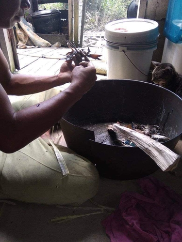 Sadam mengikat kepiting hasil tangkapannya di Desa Sarang Burung Danau, Kec. Jawai, Kab. Sambas, Kalbar. Rabu,28/10/2020