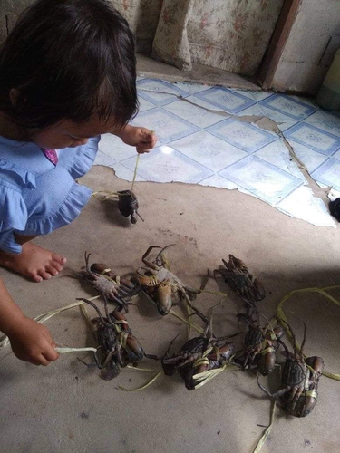Arumi bermain dengan kepiting hasil tangkapan ayah nya di Desa Sarang Burung Danau. Kec. Jawai. Kab. Sambas. Rabu,28/10/2020