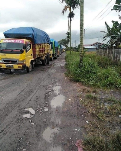 Sejumlah truk membawa hasil kebun masyarakat jawai berderet antri  di penyebrangan perigi piyai Kab. Sambas. Kalbar. Rabu,28/10/2020