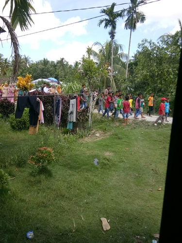 Iringan pengantin yang di ramaikan oleh anak anak di depan di Sb. Kuala, Kec. Jawai, Kab. Sambas, KalBar. Rabu (28/10/2020)