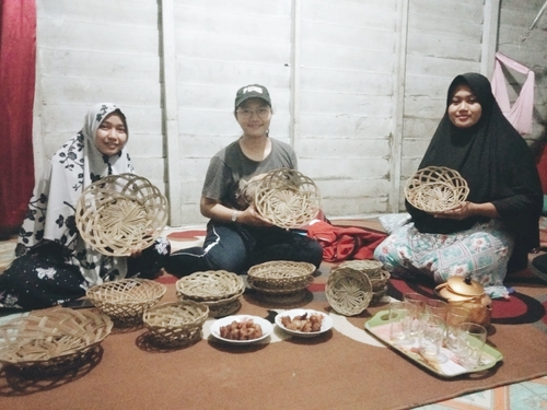 Melihat hasil kerajinan piring lidi yang dibuat oleh perempuan Kepenghuluan Teluk Nilap, Kec. Kubu Babussalam, Kab. Rokan Hilir, Senin (19/10/2020)