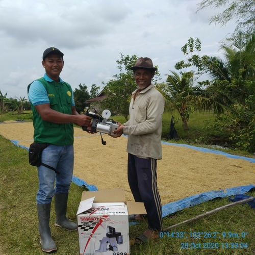 Penyerahan bantuan alat penjahit karung dari Dinas Perkebunan dan Peternakan Kabupaten Pelalawan melalui PPL Pertanian kepada perwakilan Kelompok Tani Lintas Bono Desa Petodaan, Kec. Teluk Meranti, Kab. ...