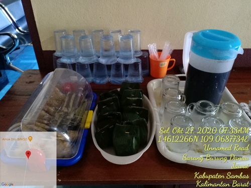 Pemdes menyiapkan kue beraneka ragam untuk tamu yang datang ke kantor Desa Sarang Burung Danau, Kec. Jawai, Kab. Sambas, Kalbar. Selasa,27/10/2020