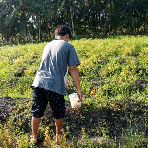 Hasil panen cabai rawit Pak Subhan mencapai kurang lebih 50 kg dengan harga RP. 25.000/kg. Sarang Burung Danau,  Kec Jawai,  Kab Sambas,  Kalbar. Selasa, 27/10/2020
