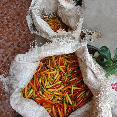 Kondisi cabai rawit Pak Subhan yang baru saja di panen tadi pagi di Sarang Burung Danau,  Kec Jawai,  Kab Sambas,  Kalbar. Selasa, 27/10/2020