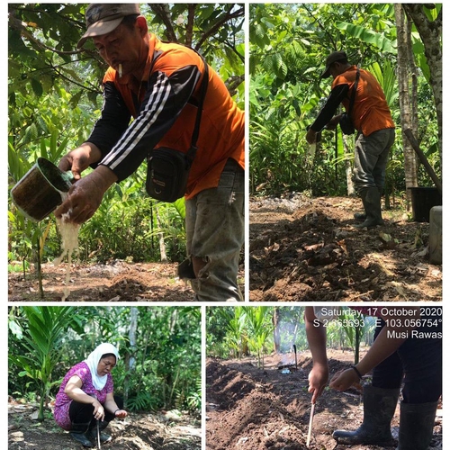 Proses pengamplikasian pupuk organik dan penyemaian bibit untuk mini demplot (lahan percontohan) dengan konsep Agroforesty