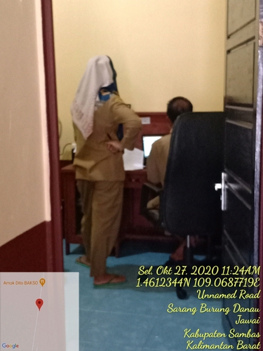 Irma, Kaur perencanaan sedang berkoordinasi dengan Suhaimi Sekdes Sarang Burung Danau, Kec. Jawai, Kab. Sambas, Kalbar. Selasa,27/10/2020.