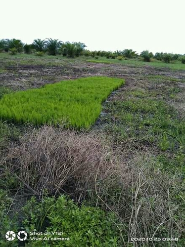 Hamparan sawah dan bibit padi melik pak nogleng warga dusun sentosa-sungai segajah makmur-kubu-rohil beberapa hari lg bisa ditanam,selasa 27/10/2020
