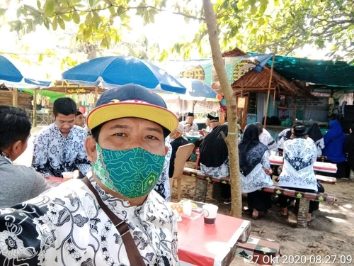 Seluruh anggota PGRI melakukan pertemuan di pantai wisata bahari dalam acara pemilihan ketua PGRI Kec. Jawai, Kab. Sambas, Kalbar. Selasa,27/10/2020