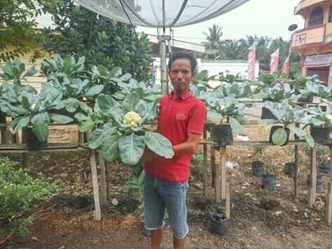 Suhartono menunjukkan tanaman bunga kol yg ia tanam dalam kalibet disungai segajah jaya-kubu-rohil selasa 27/10/2020
