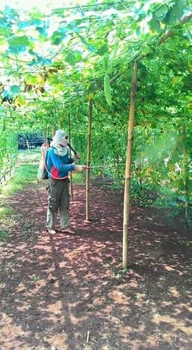 Dayat menyemprot hama ditanaman pare mlknya disungai segajah jaya-kubu-rohil selasa 27/10/2020