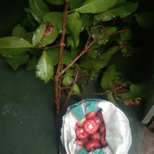 ibu kartini membawa bibit serta buah jambu dr sawah. desa sarang burung danau kec jawai. kab sambas kalbar.senin 26/10/2020