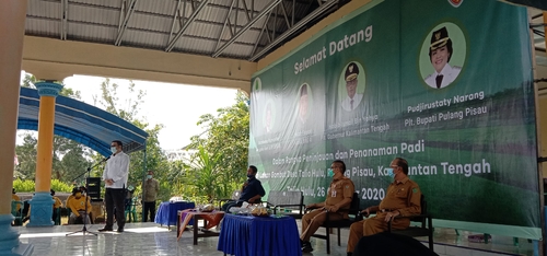 Kepala BRG RI, Ir Nazir Foead, MSc memberikan sambutan dalam kunjungan kerja Peninjauan dan Penanaman Padi Lahan Gambut dan Serah Terima Paket Revitalisasi Ekonomi untuk Ketahanan Pangan, Senin (26/10/2020), di ...