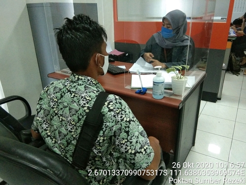 Fasdes mendampingi ketua kelompok tani Sumber Rezeki melakukan penarikan dana kegiatan demplot paludikultur di salah satu bank yang ada di Pangkalan Bun, Kab. Kotawaringin Barat, Kalimantan Tengah, Senin ...
