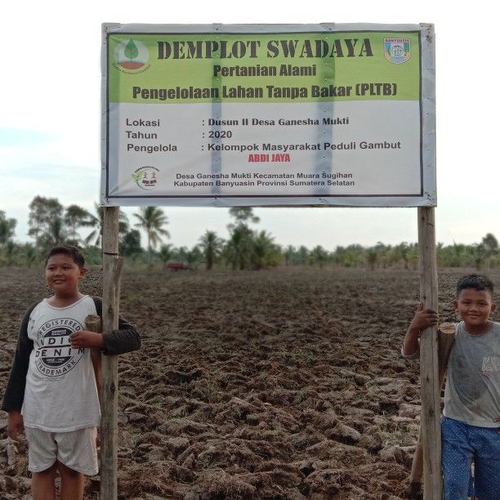 Kiki dan hoho membantu menabur arang sekam di lahan Demplot PLTB milik KMPG Abdi Jaya Desa Ganesha Mukti Kec.Muara Sugihan Kab.Banyuasin Prov.Sumsel.20/10/2020.