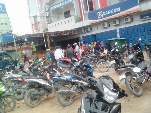 Masyarakat sudah antri jam 7 pagi untuk mengambil bantuan sosial tunai sebelum pintu BRI cabang kubu-rohil dibuka senin26/10/2020