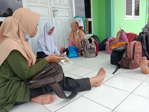 Kelompok ibu ibu sedang beritirahat sambil menunggu anak anak selesai di wisuda di Desa  Krta mukti Air Sugihan kab; Ogan Komering Ilir Sumatera Selatan.minggu 25/10/20.20.